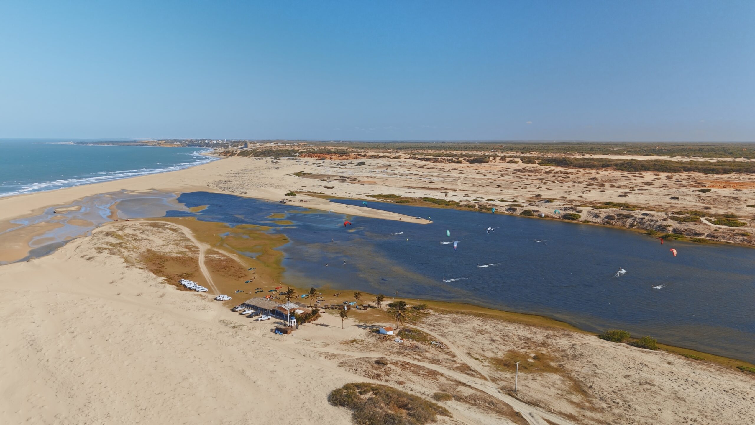 Wind during this season at the Guajiru spot triangle is as reliable as it gets – 15 to 30 knots every day. The air temperature averages 31°C, and the water stays at a warm 28°C. We mainly ride across three spots – Guajiru, Emboaca, and Lagoa dos Jegues – moving between them by 4×4, buggy, or downwinder.